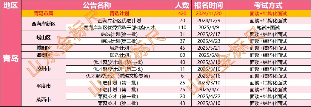 ✅国内普通高校可报考:西海岸新区街、镇;莱西;平度;胶州;崂山街道✅不限专业:城阳、即墨、莱西(艺术专业不可报)、平度本文精准拆解各区市引进核心政策,聚焦整体特征、公告时间、选聘条件、考情解析、福利待遇等内容,助力大家科学规划备考上岸路径。