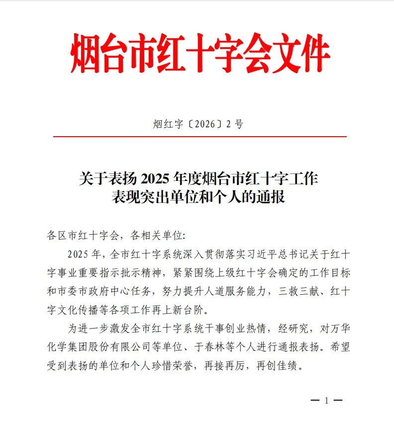为大力弘扬“人道、博爱、奉献”的红十字精神,进一步激发烟台市各级各部门对红十字工作的积极性与主动性,近日,烟台市红十字会对2025年度突出表现的单位和个人进行通报表扬。烟台财金集团旗下财金新动能投资有限公司喜获2025年度烟台市红十字会“爱心捐赠博爱奖”。