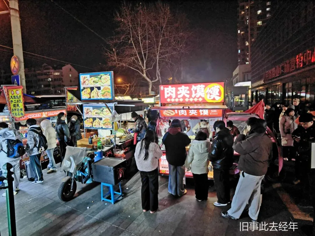 夜市的小吃摊,大部分是街坊邻里、周边居民以及地铁口出来的食客,顺着沿路摊位逛下去,几乎每一个摊位都实打实的便宜好吃。一出地铁1号线的C1出口迎面而来的就是肉夹馍摊,每天这都排着长长的队伍,摊主是年轻夫妻俩,从有这个夜市开始就在这里,凭着优惠的价格和地道口味收获了不少回头客,白吉馍烤得外焦里嫩,掰开后夹上炖得软烂的腊汁肉,肥肉不腻、瘦肉不柴,咬一口满嘴醇香,不用多余调料,就足够解馋。