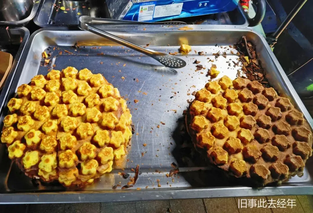 火山石烤肠摊前,纯肉烤肠烤至焦香爆汁,实打实的肉香让人回味。糖葫芦摊格外显眼,红彤彤的山楂裹着厚糖衣,酸甜不腻,不光山楂串,还有多种水果品类的小小糖球串,让人垂涎。继续往前是现做华夫饼,金黄蓬松,奶香味浓郁,松软香甜格外治愈。