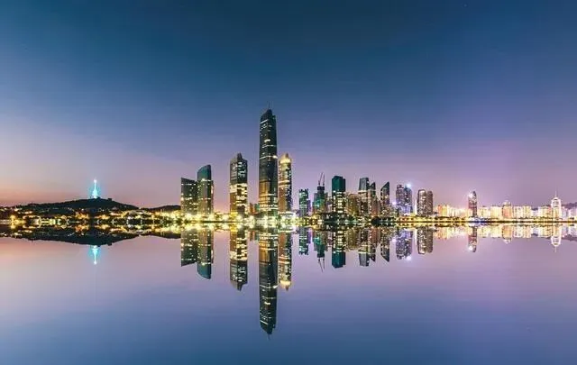 奥帆中心走夜景,手机调夜景模式,栏杆当前景,灯带像河。