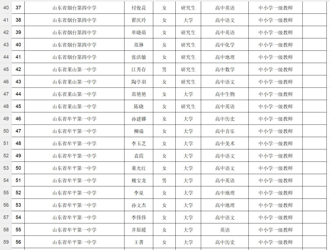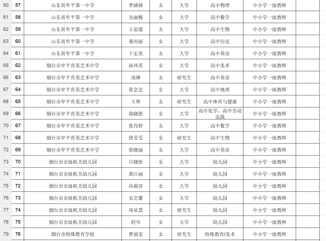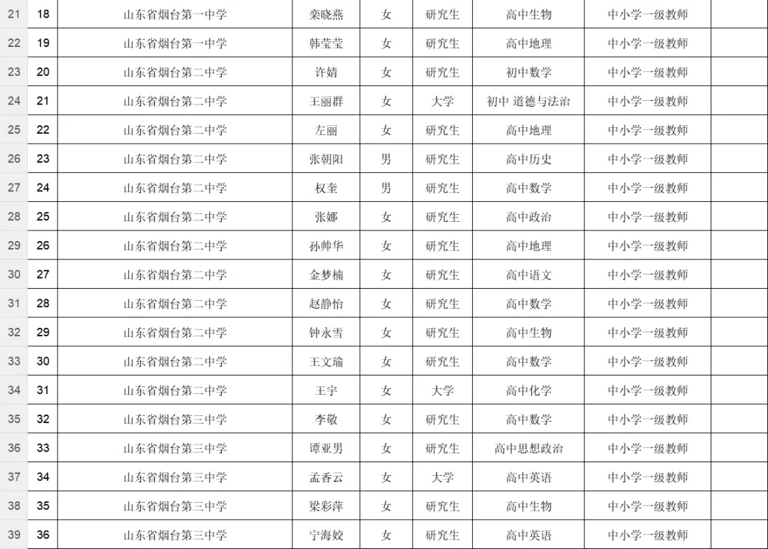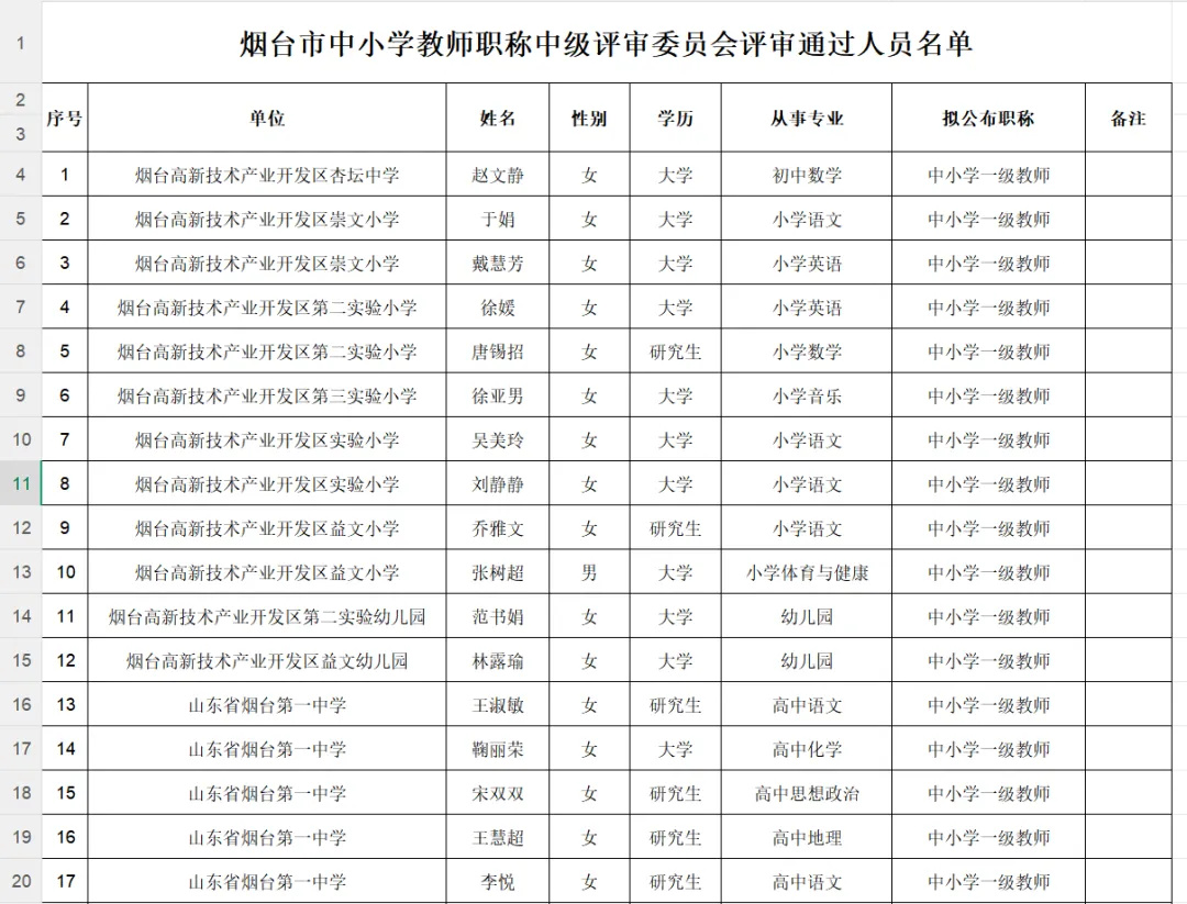 >2025年度烟台市中小学教师中级职称评审拟通过人员名单抢先看
