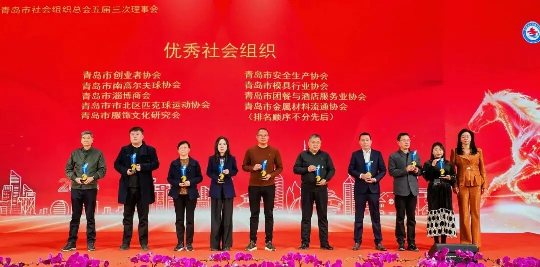 2025年1月30日,青岛市服饰文化研究会荣获“2025年度青岛市优秀社会组织”称号!研究会代表刘晓燕出席青岛市社会组织总会五届三次理事会,现场荣领该荣誉。这是对研究会工作的全面认可,更是对其“为人民编织美好生活”初心的有爱见证,也将激励研究会在未来继续砥砺前行,续写文化传承与社会服务的新篇章。