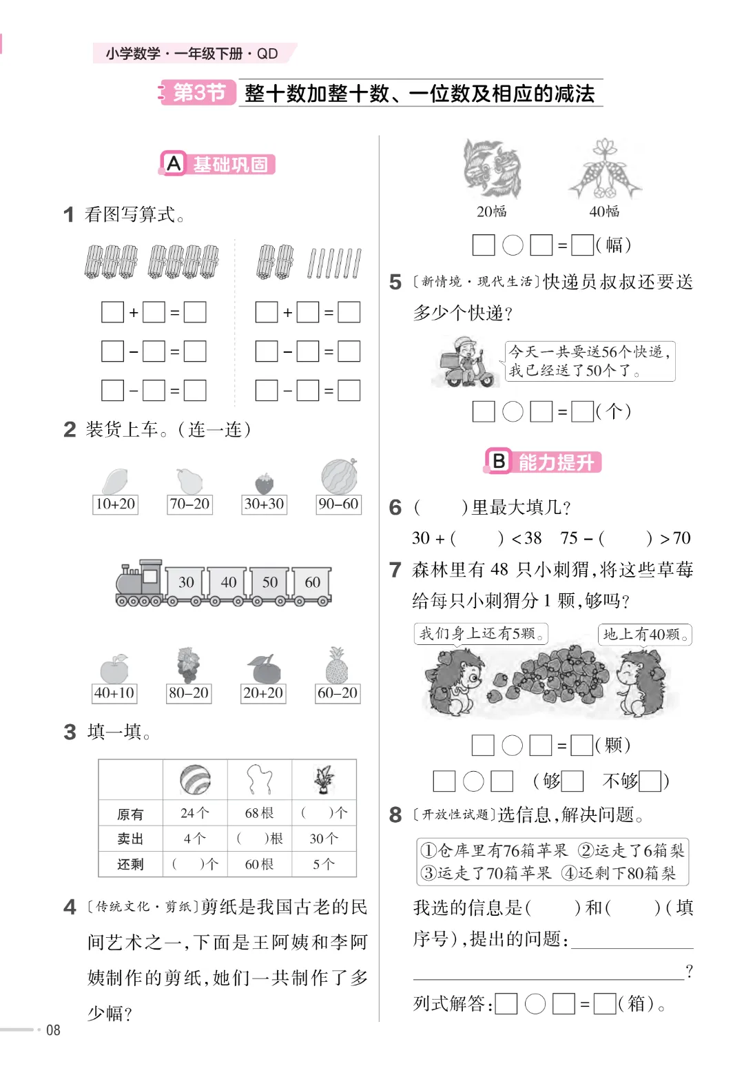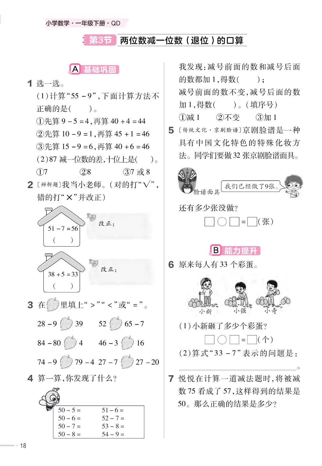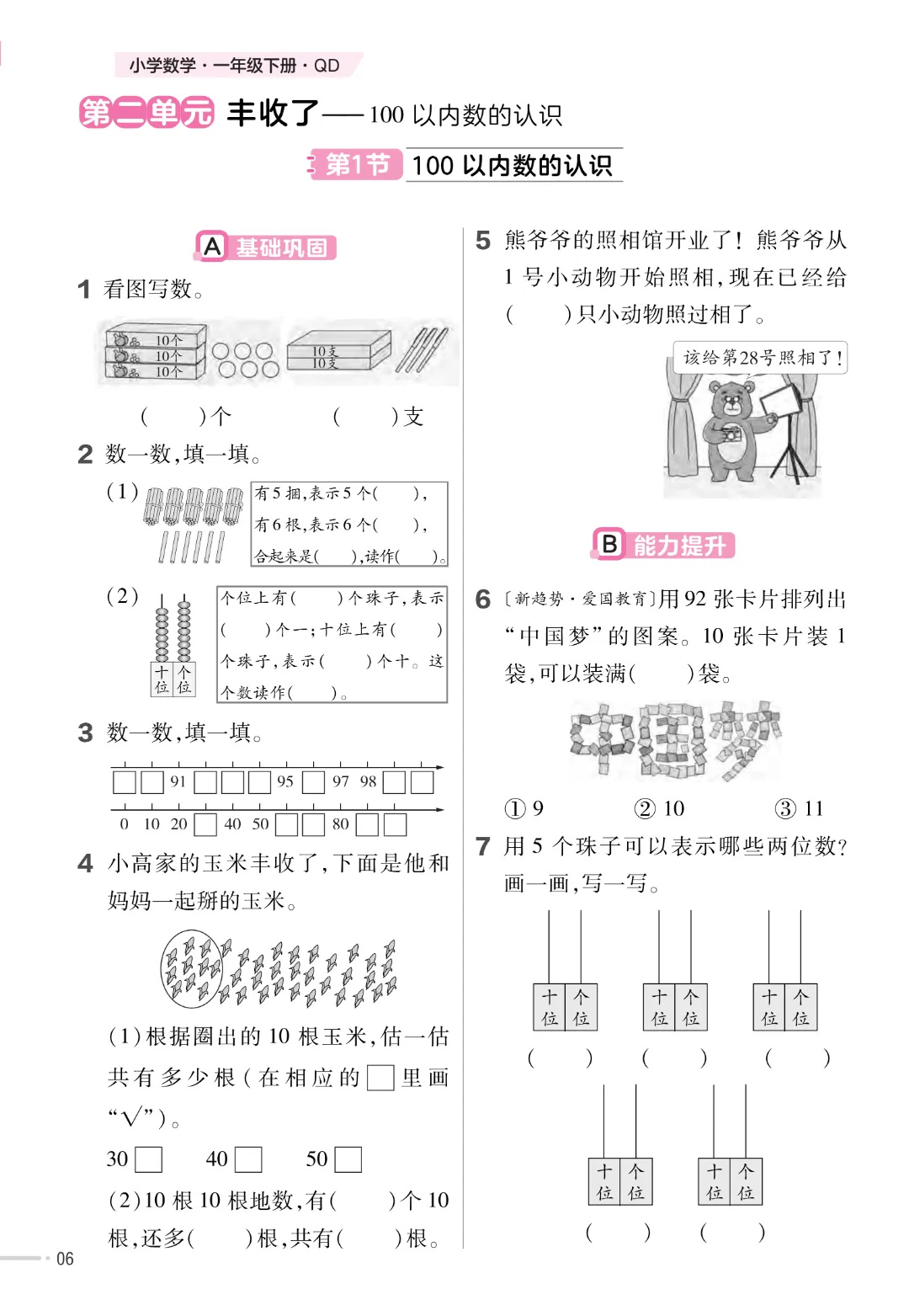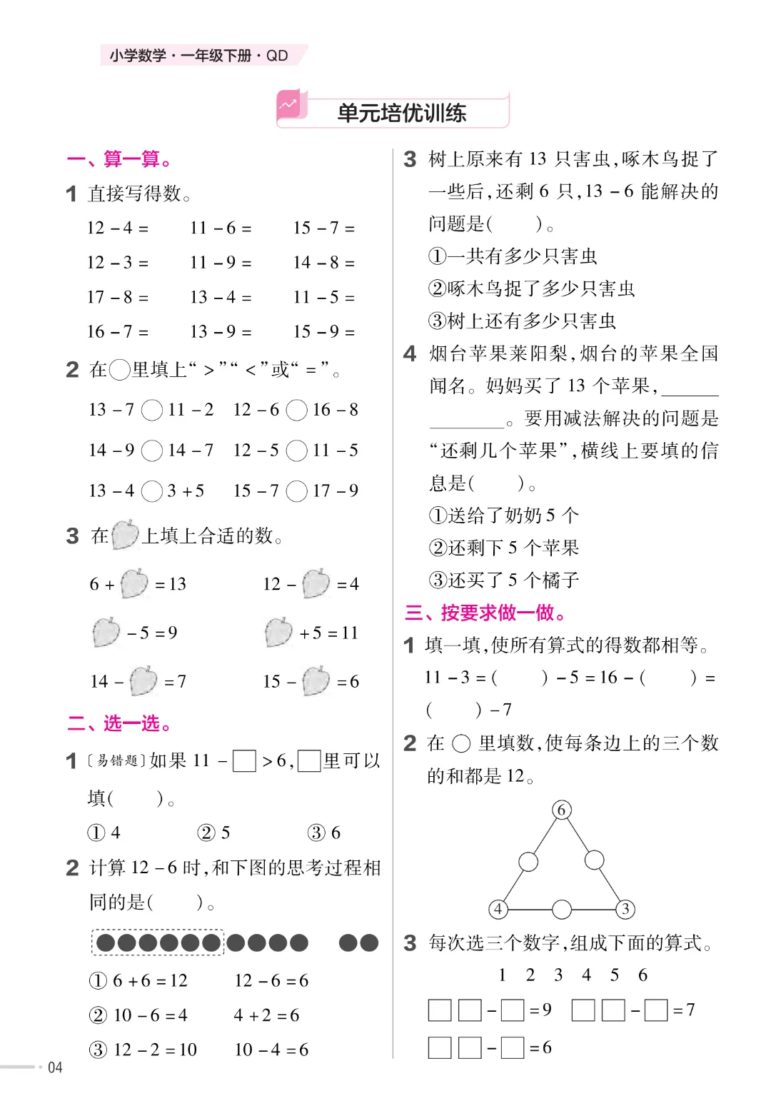 【一下数学】一年级下册数学青岛63版《寒假预习同步练习》| 完整高清电子版可打印