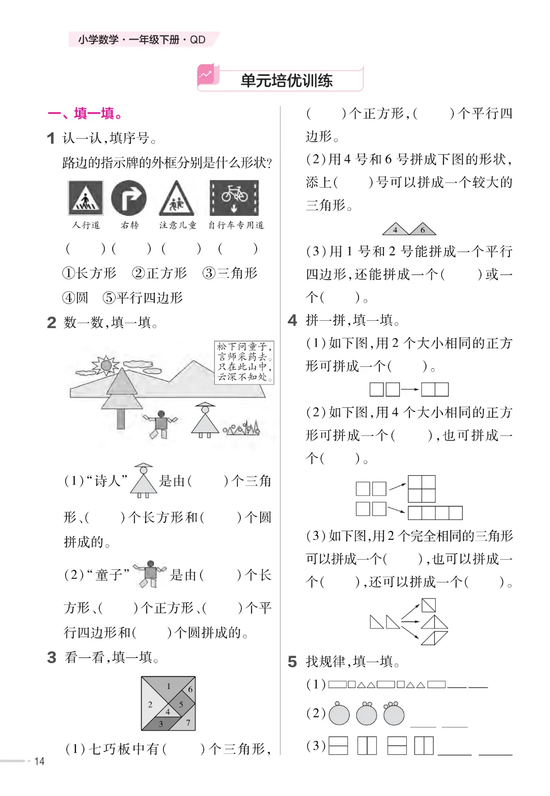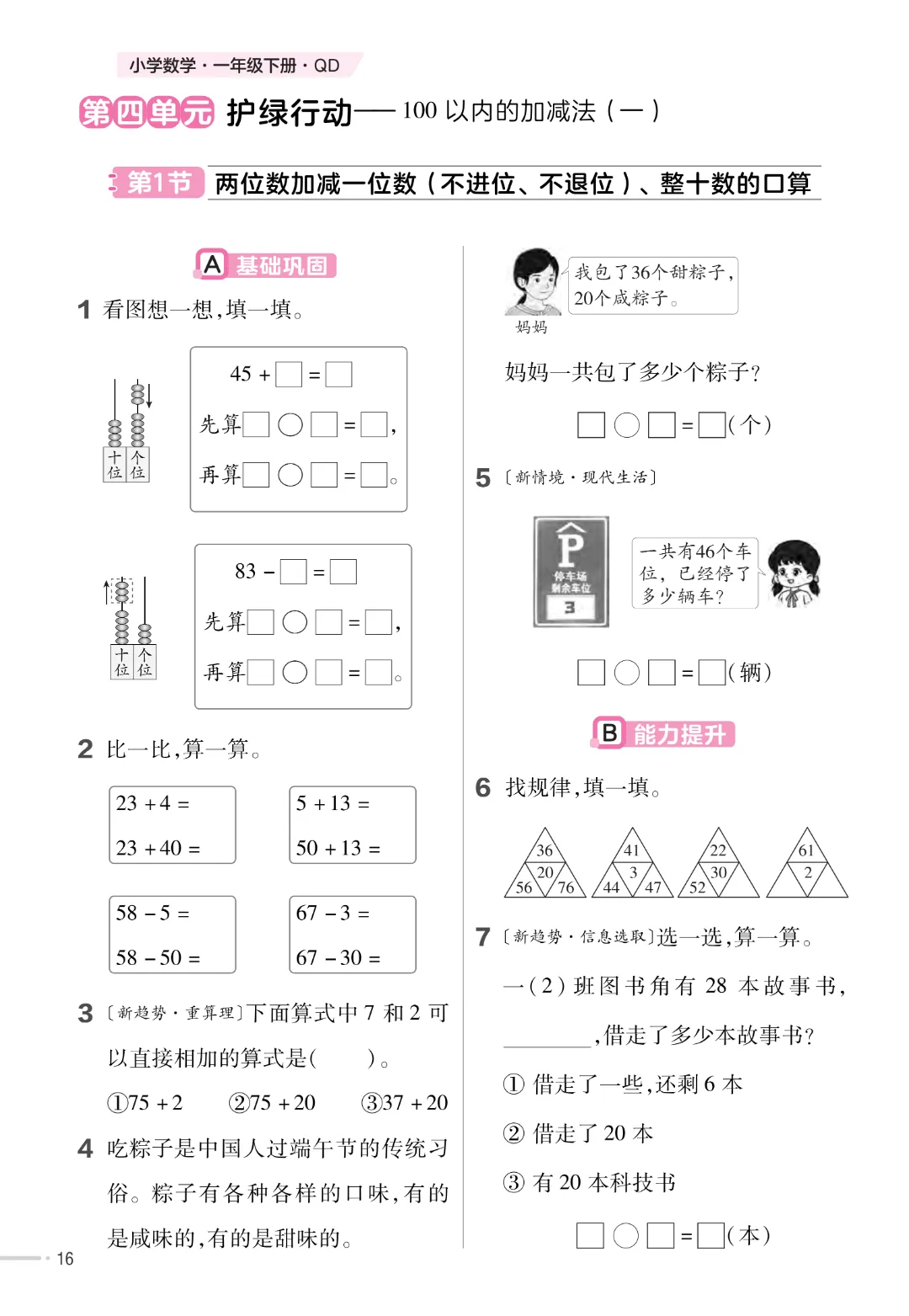 今天给家长们分享的是:【一下数学】一年级下册数学青岛63版《寒假预习同步练习》| 完整高清电子版可打印