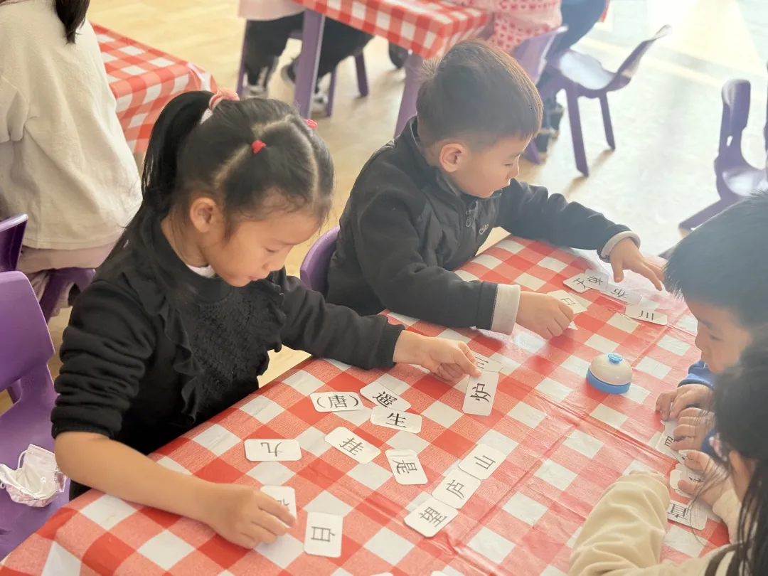 在汉字王国快乐的寻宝之旅中,孩子们凭着他们的火眼金睛,不仅拼摆速度快得像闪电,识字量也“噌噌”往上涨,小脑袋里又充满了新的知识能量。