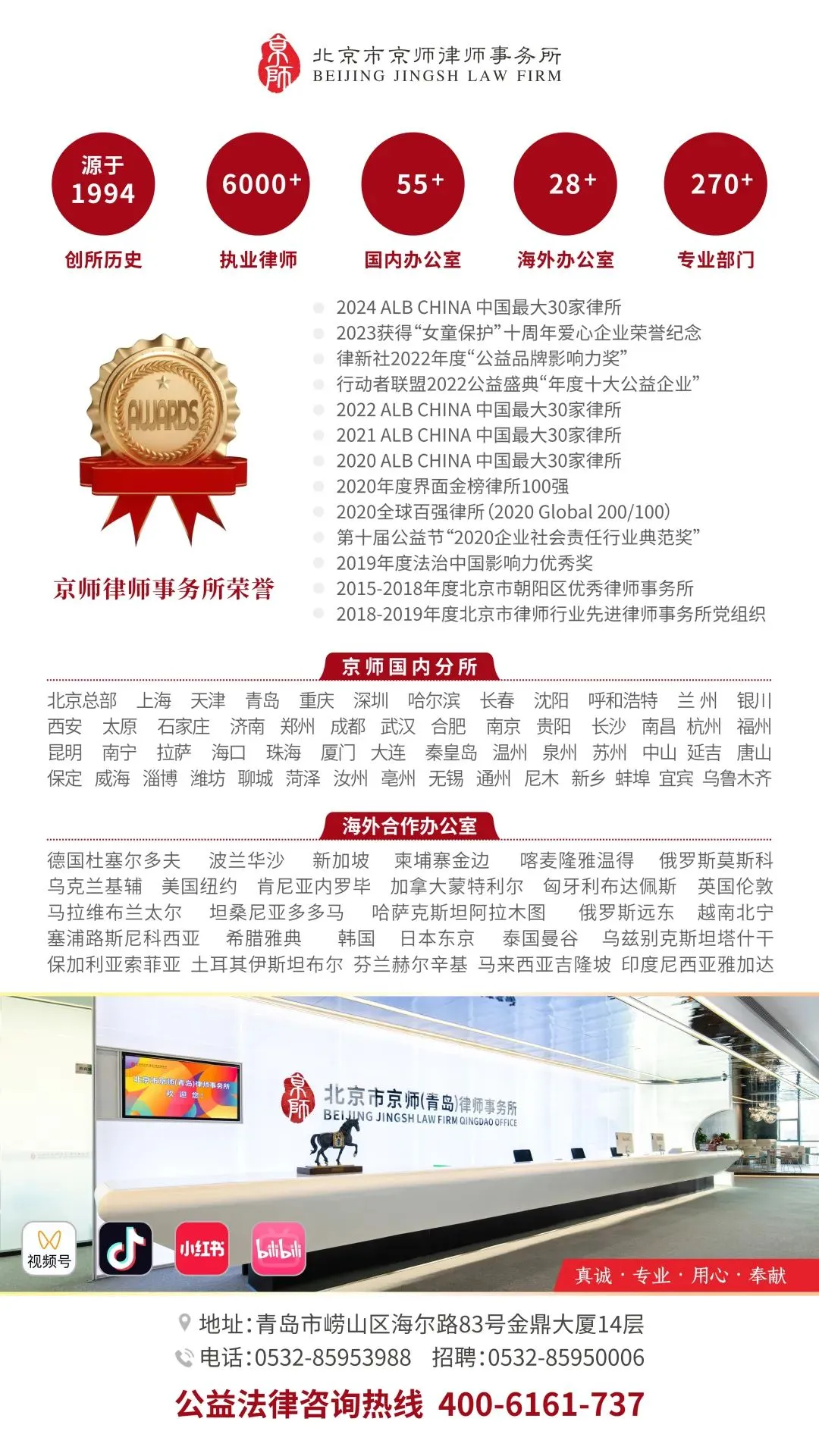 律所公益 | 京师(青岛)律所公益法律咨询热线400-6161-737