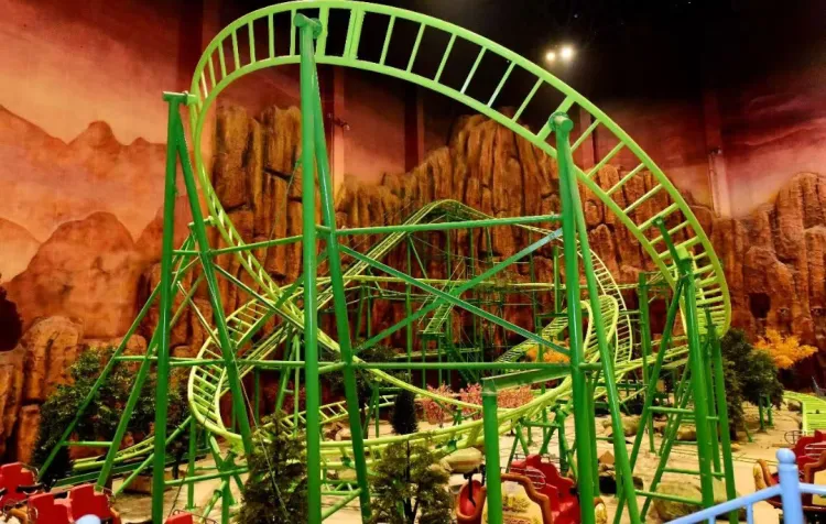 崂山飞龙—定制室内悬挂过山车,犹如一条飞龙从海面腾空而起盘旋在崂山顶端,在你感慨崂山壮丽、海面壮阔之时,又如一道闪电潜入海底消失,在黑暗深处体验急速心跳,用响彻云霄的尖叫声证明胆量。