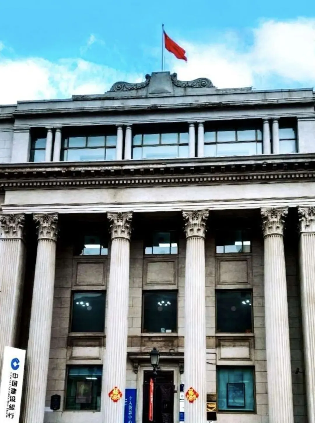 交通银行青岛分行旧址:交通银行位于青岛市中山路93号,罗马式建筑。建于1929年。由中国第一位留美归国的建筑师庄俊设计。是一座典型的“柱式”罗马建筑,建筑占地1371平方米,为砖石钢筋混凝土结构四层楼。总建筑面积3814.76平方米,门前有4根高约11米的钢筋混凝土科林新廓柱。目前由建设银行入驻。