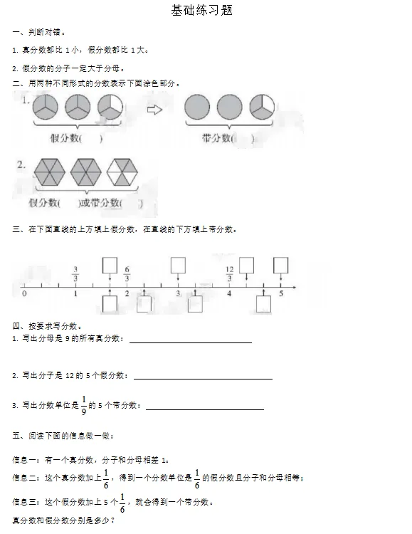 ② 真分数和假分数的意义。