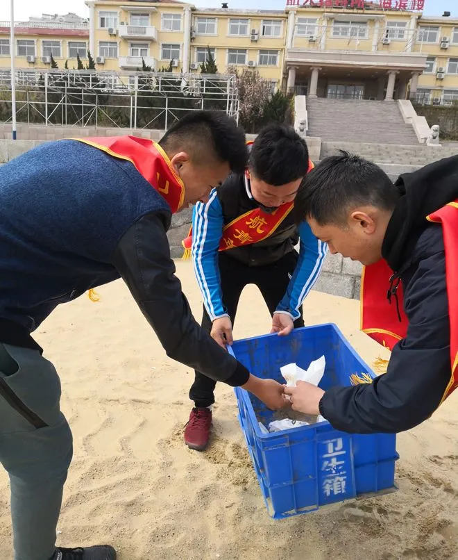 海风微冷卷起阵阵碎沙,嬉戏的海鸥将队员们的目光引向远方——标志性的灯塔笔直地矗立在烟台山顶,海上的邮轮正将旅客们安全地送向远方。心中圣地,梦里港湾,云游仙境,梦醉烟台,如此美丽的城市我们要用自己的绵薄之力让她更加美丽宜人。在团支部的同志对活动要求进行简单的讲解和分工之后,队员们便迅速投入到对沙滩的“地毯式”排查当中,小到一个烟头,大到一个瓶子,队员们将平时工作中的严谨细致运用到了活动当中,不放过每一个死角,不留下每一片垃圾。