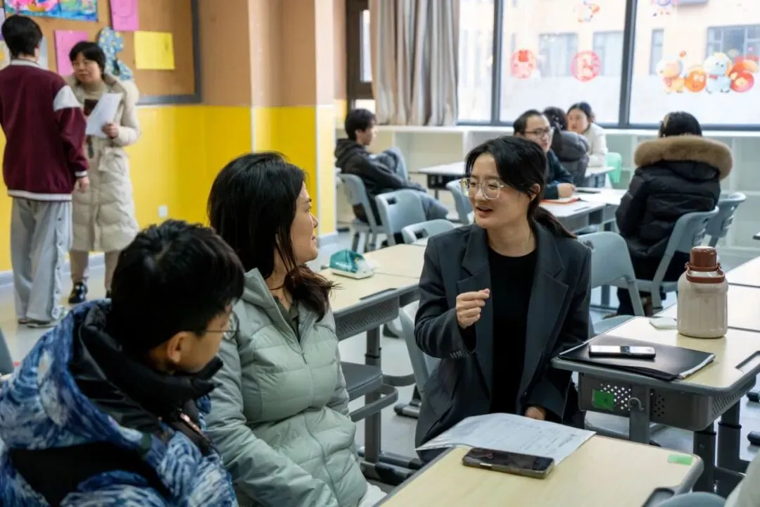 真正的教育,始于真正地“看见”每一个学生。班级家长会结束后,学科教室里,一场场跨越文化、融合东西方教育智慧的家校深度对话已然精准连接。老师们有的放矢,从专业的角度结合孩子的课堂、成绩,精准把握孩子在各学科前行路上的关键所在。透过教师的专业视角,家长们更立体地看见了自己的孩子。同频的期待、同向的努力让这场面向未来的深度对话有了温度。