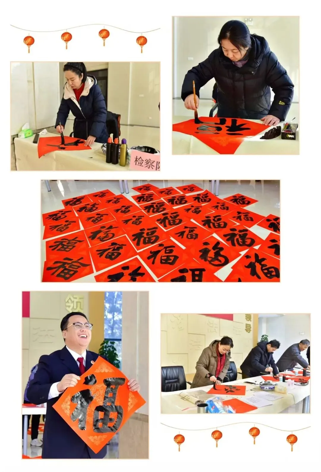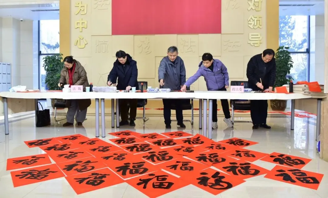 书写寓意吉祥平安的福字、春联