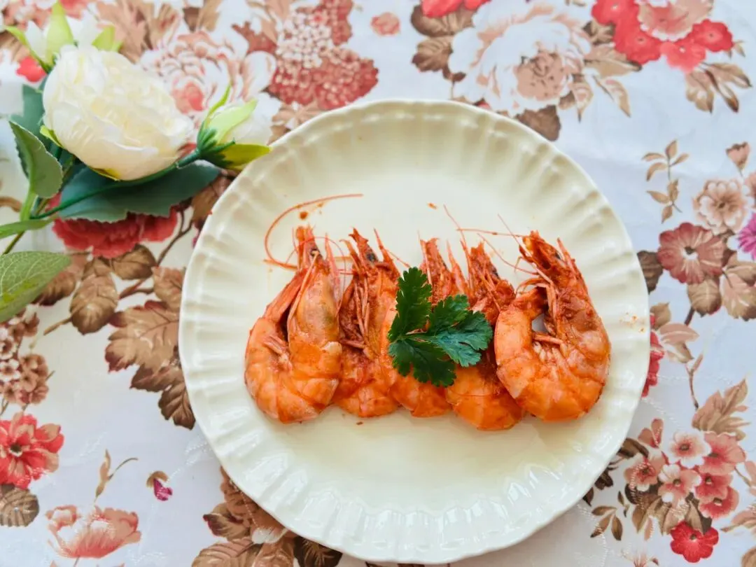红烧大虾、白菜木耳蛋花汤