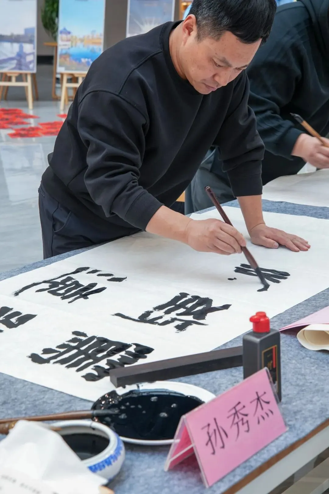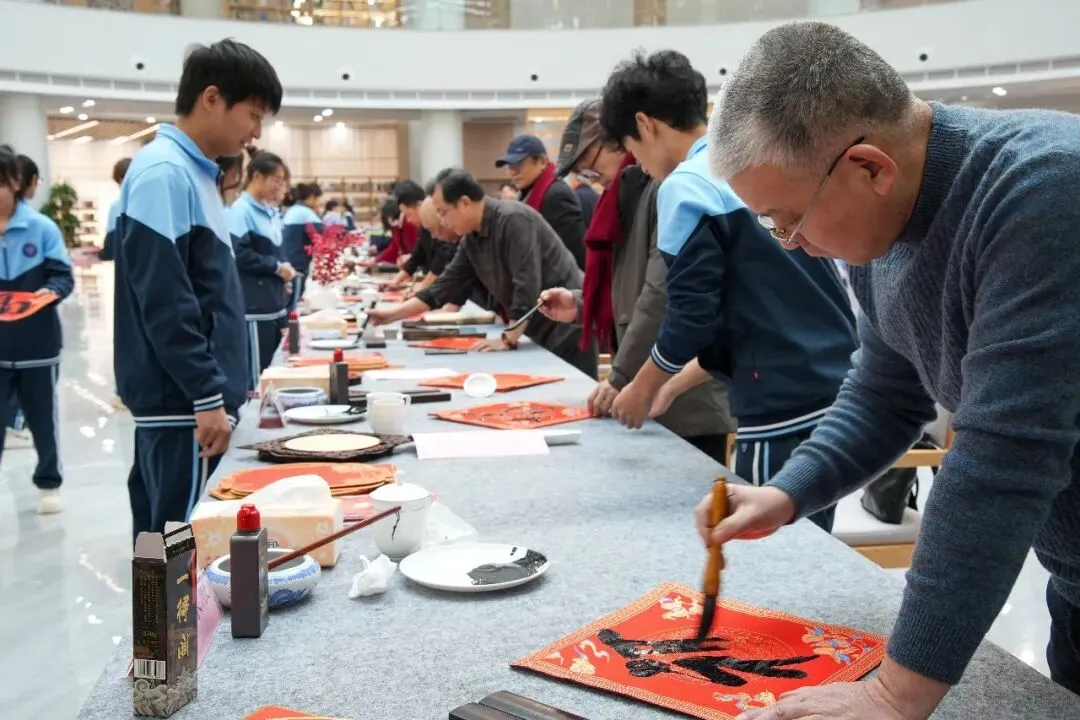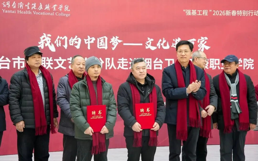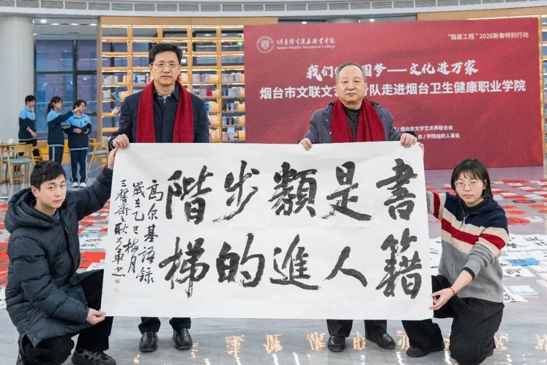 1月23日下午,烟台市文联文艺志愿服务队,来到烟台卫生健康职业学院,以笔墨为媒搭建文化桥梁,为师生们送上了一场文化盛宴。烟台市书法家协会主席姜玉松、副主席耿大军、高毅,副主席兼秘书长孙秀杰,副秘书长王宁波,理事王利亮、王宗辰等参加了活动。活动伊始,书法家们开展了采风调研,深入走访校园、了解学院建设发展历程与“医者仁心”的育人理念,为现场创作积累了鲜活素材。随后,学院举行文化导师聘任仪式,聘请市书协主席姜玉松等为文化导师。这既是校地文化合作的深化拓展,更是推动优质文艺资源与校园育人深度融合的生动实践。在书法创作交流笔会现场,书法家们纵笔挥洒,寄寓对学院事业蓬勃发展的诚挚祝愿。除了寓意吉祥的福字与春联,他们也悉心书写了“为中华之崛起而读书”“书是人类进步的阶梯”等名句,将殷殷期许融于翰墨之中,赠与莘莘学子。此次进校园活动精准对接高校师生文化需求,将优质文艺资源送到师生身边。未来将持续深化校地文化合作,聚焦高校特色与师生需求,推出更多接地气、有温度的文艺活动,以文化人、以美育人,为校园文化建设赋能增效,为烟台文艺事业高质量发展注入不竭动力。
