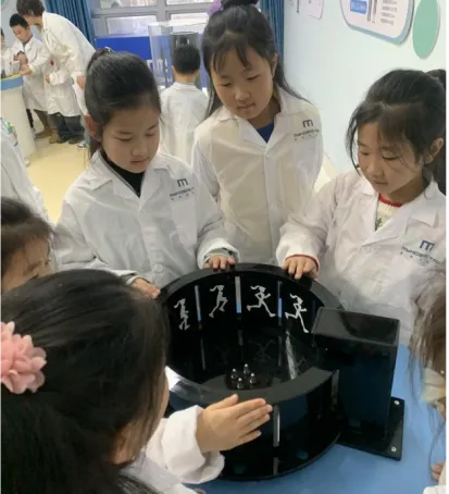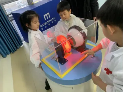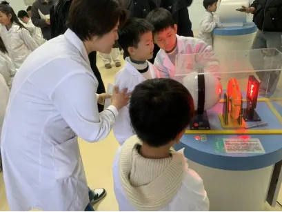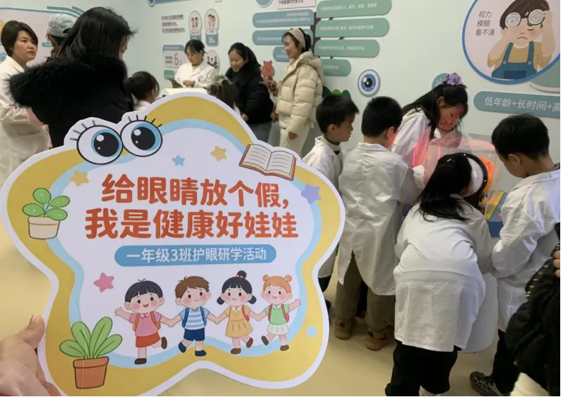 最后,孩子们来到活动区,开启了充满乐趣的护眼互动游戏。各式仪器灯光开启后孩子们通过转动设备,光线下出现一只扇动翅膀的小鸟还有或前进或后退的跑步的小人儿,有趣的科学小游戏引得孩子们发出阵阵欢呼。在充满乐趣与知识的氛围中活动接近尾声。阳光下,孩子们明亮的眼眸里闪烁着新知的光芒,这场由家委会精心组织的研学活动,不仅让“科学护眼”的理念扎根在每个孩子心中,更让他们在亲身体验中学会了珍惜自己的“心灵窗户”,带着收获与承诺,开启健康的成长之路。