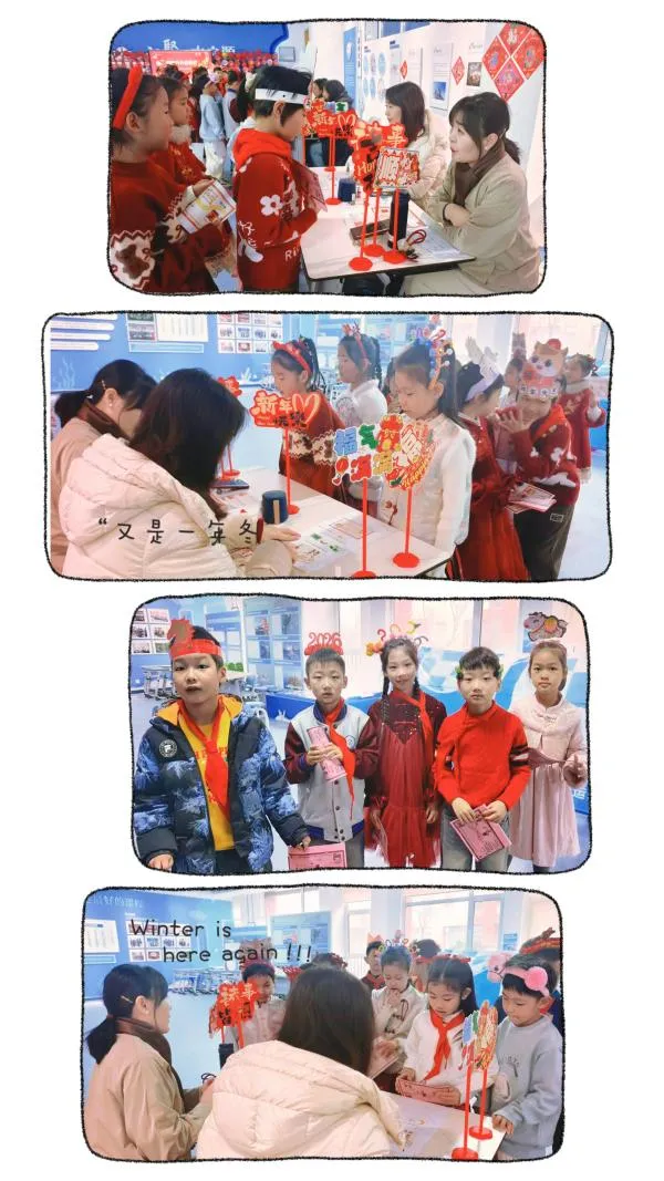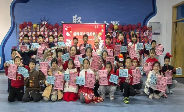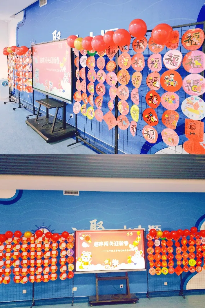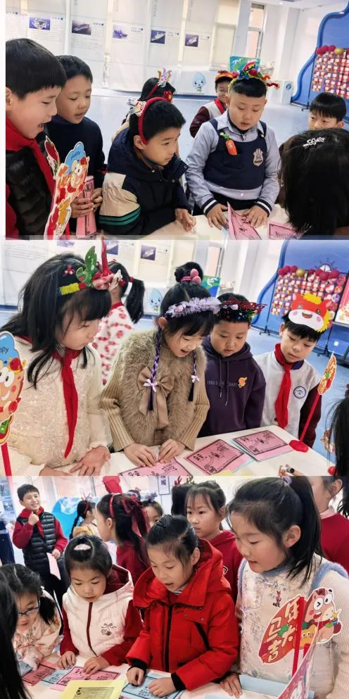 在“糖葫芦串字”关卡,孩子们头戴自制的喜庆头饰,准确认读生字,清晰说出部首与结构,扎实的字词基础展露无遗;“鞭炮炸妙句”环节里,他们化身小小创作家,灵活运用比喻、拟人等修辞手法,诞生出“星星好像宝石镶嵌在天空中”等生动的句子,思维的火花在教室里跳跃;“福字藏古诗”中,孩子们声情并茂地背诵经典篇目,稚嫩的童声里满是对传统文化的喜爱;“对联展口才”时,他们认真组织语言,围绕新春主题流畅表达观点,口语能力得到充分锻炼。