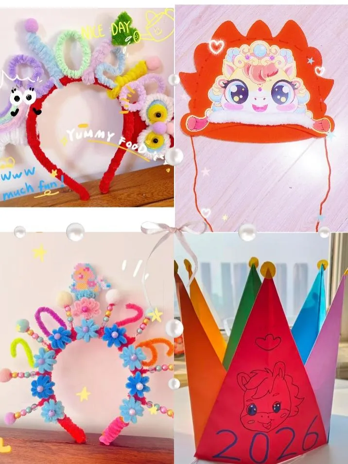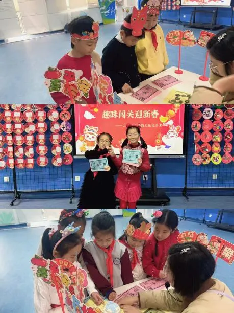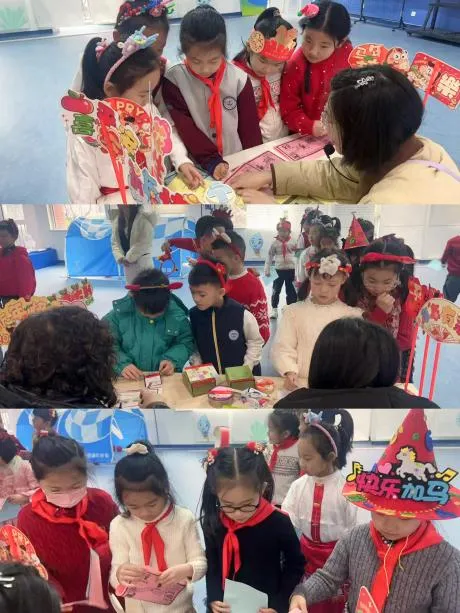 为了让活动更具仪式感,孩子们更是化身“手工小达人”,利用周末时间精心制作带有龙纹、福字、鞭炮等传统元素的头饰,在剪剪贴贴的过程中感受传统文化魅力,也为即将到来的乐考活动攒足了期待。经过一番紧锣密鼓的筹备,一场充满年味的“趣味闯关迎新春”热闹开启。