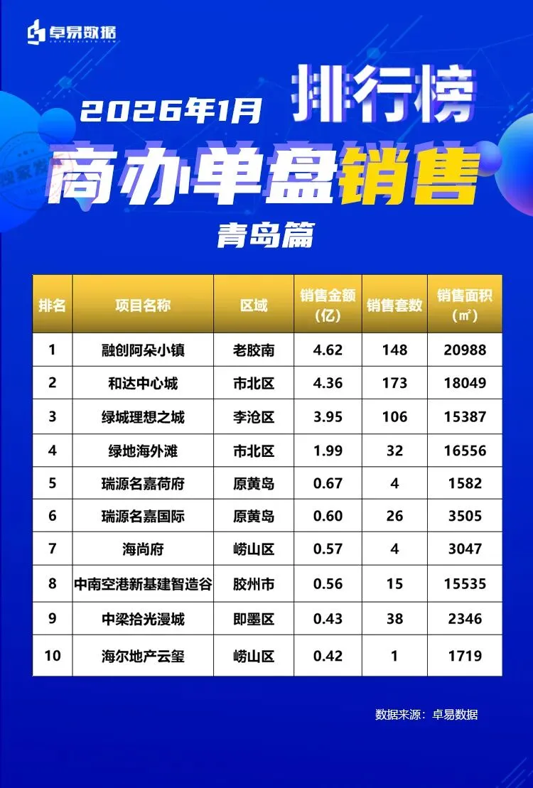 1,统计时间:2026.1.01-2026.1.30;3,商品房包含商品住宅,公寓,办公和商业,不包含保障房;5,本文数据来源于青岛房地产数据收集整理,仅供参考。由于公众号改变推送规则,点击 “在看” 推送信息可第一时间出现在订阅列表里。扫图片二维码+打入组织