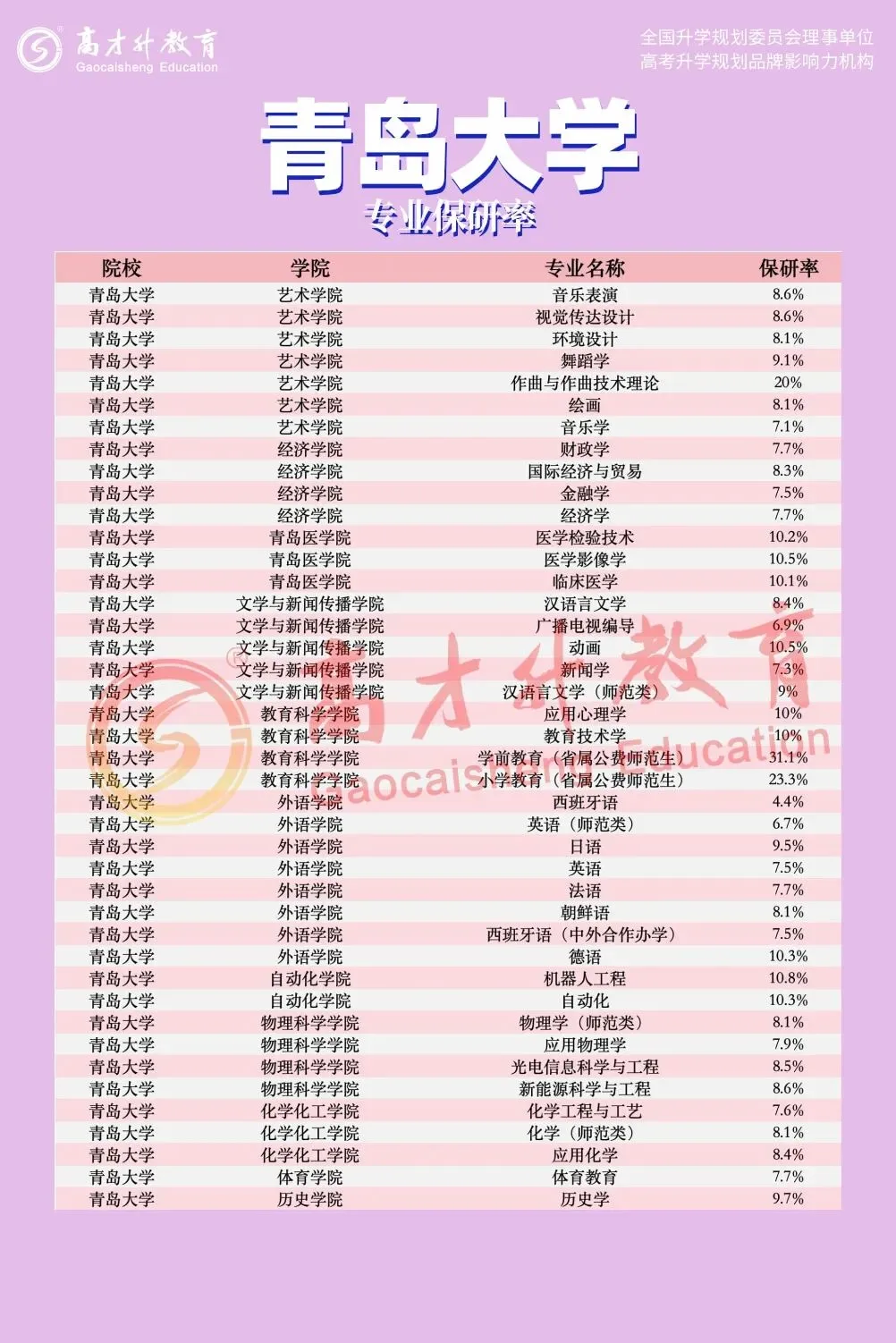2. 公费师范生项目:教育科学学院的学前教育(省属公费师范生)(31.1%)和小学教育(省属公费师范生)(23.3%)。其高保研率与国家及地方对公费师范生深造的支持政策密切相关。