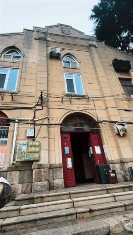 如今走近它,时光的痕迹无处不在。破损的石阶、斑驳的墙面、锈蚀的管道,以及那块写着“近代建筑(苏式楼)”的铭牌,共同诉说着岁月的变迁。杂乱的电线和空调外机缠绕着历史的内核,窗框褪色,石阶磨损,但建筑主体依然坚固如初。