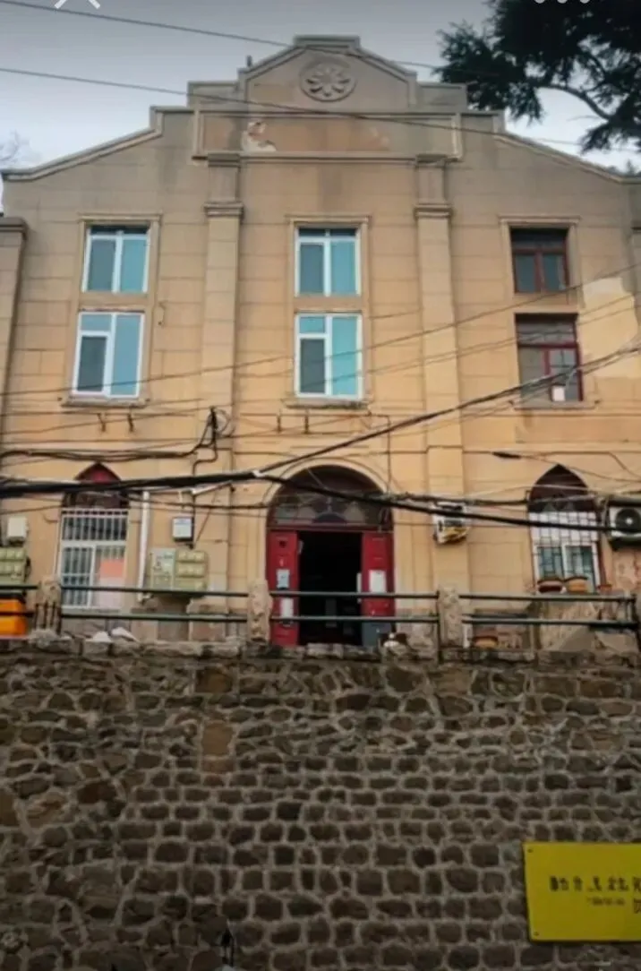 这座被称为「中华基督教会同道堂」的建筑,风格独特,米黄色的立面带着竖向线条,顶部装饰着圆形花纹,成为青岛城市建筑史上一个特殊的符号。