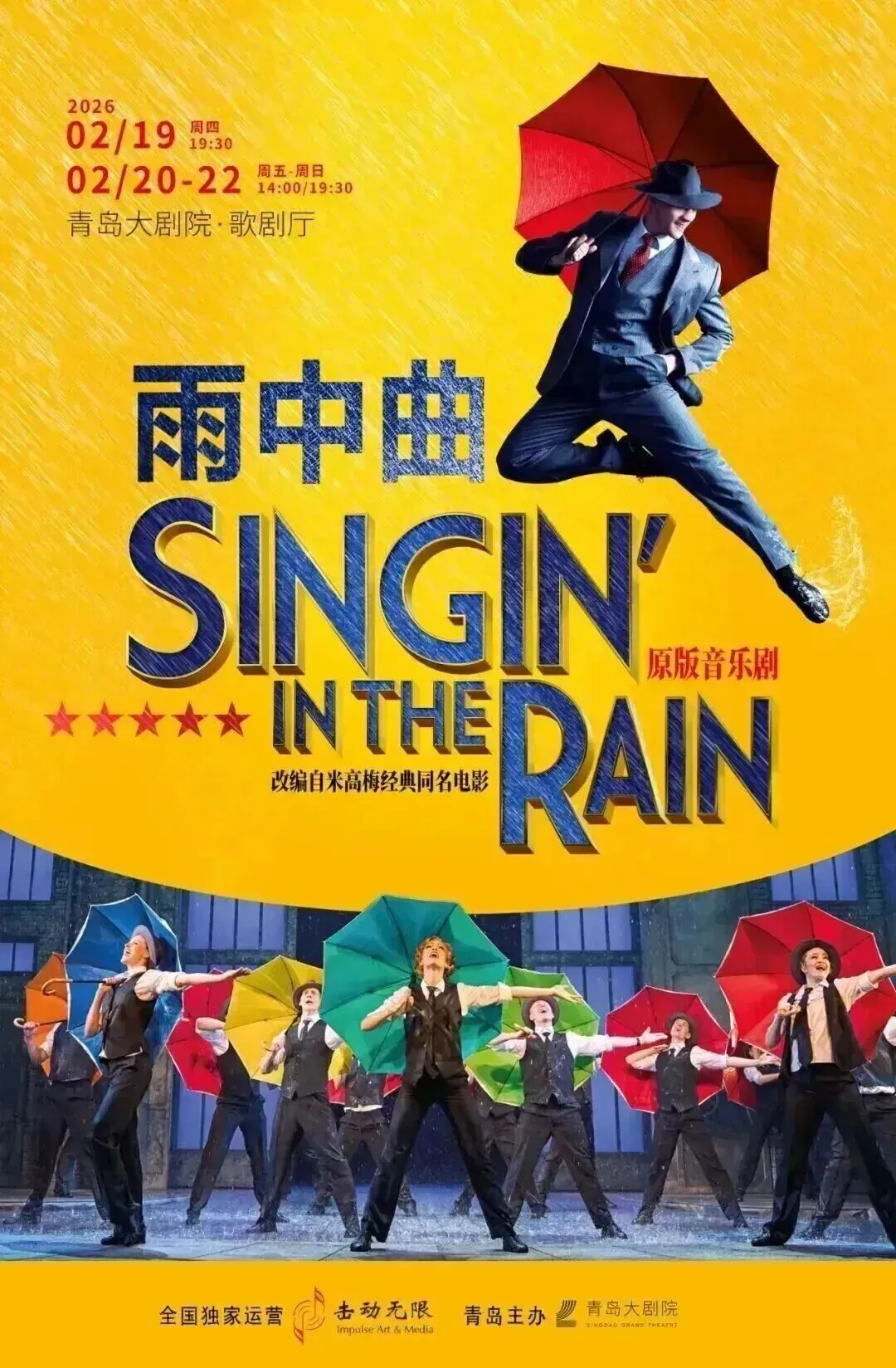 本版音乐剧《雨中曲》是伦敦西区原版作品,由乔纳森·丘奇执导。自2012年世界首演以来,一直都被观众票选为最受欢迎的电影音乐剧。它还曾获得4项奥利弗奖提名以及众多评论家和媒体的高度赞赏和评价。