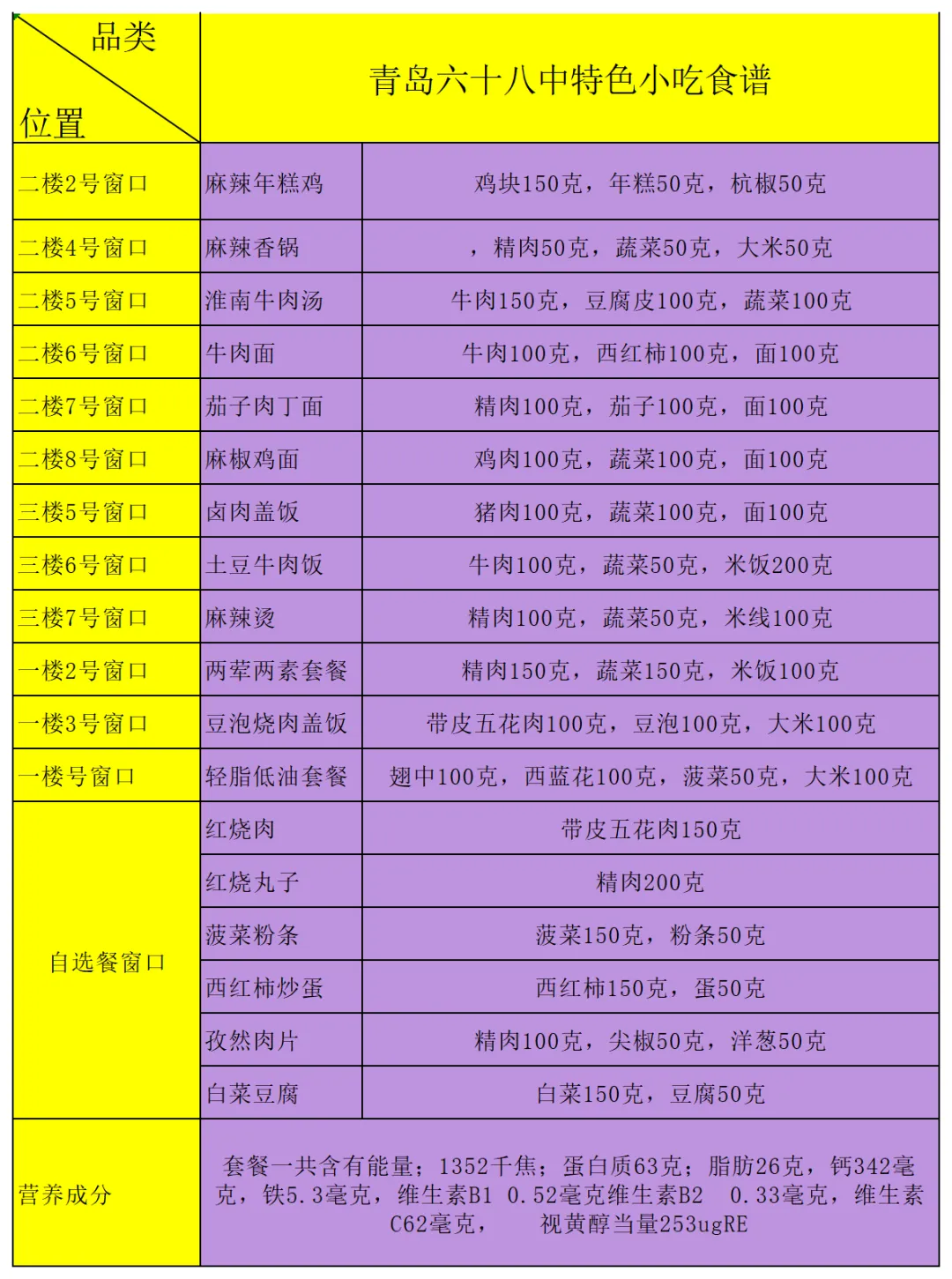 青岛六十八中早餐食谱公示