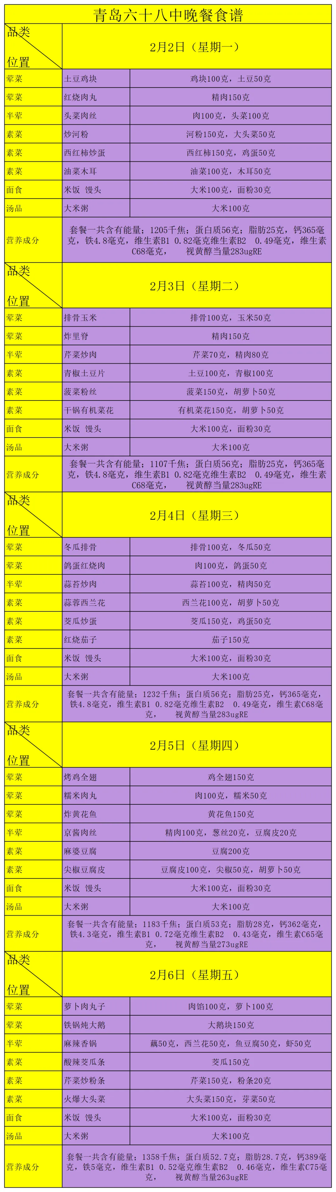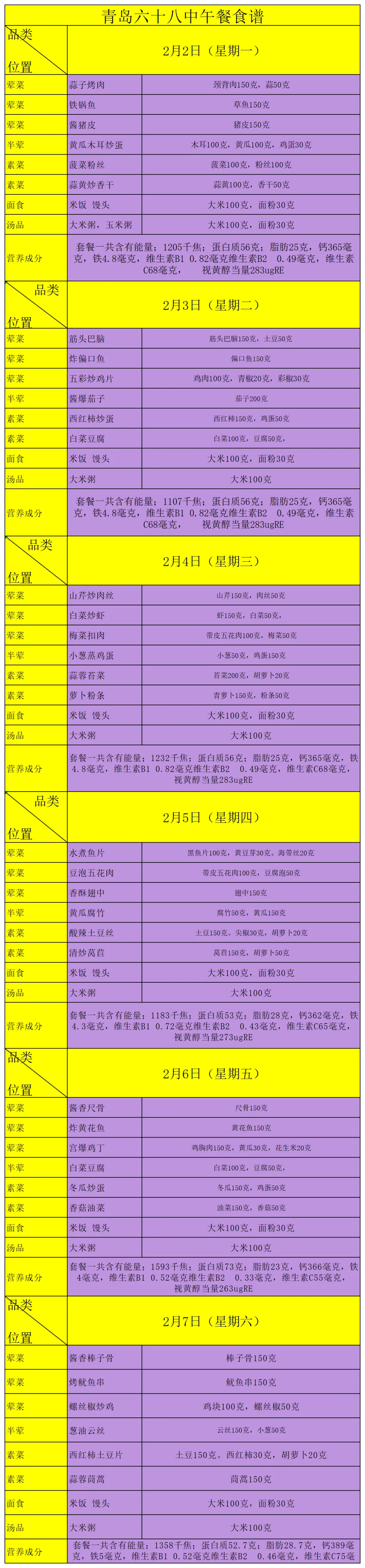 >好“食”光 | 青岛六十八中一周(2026.2.2-2.6)营养食谱