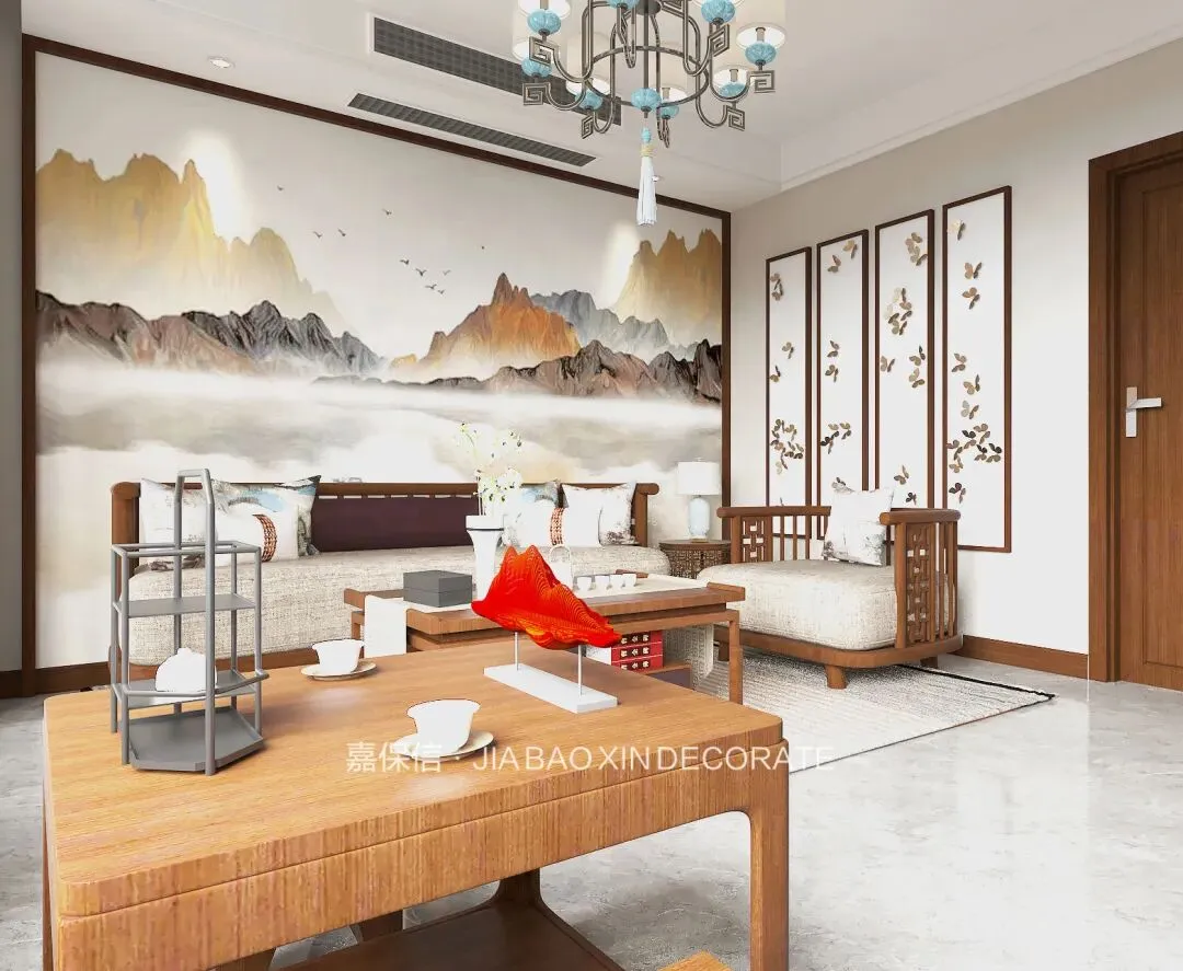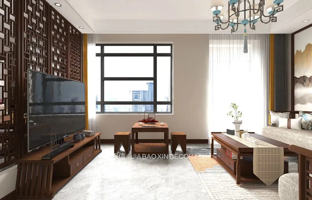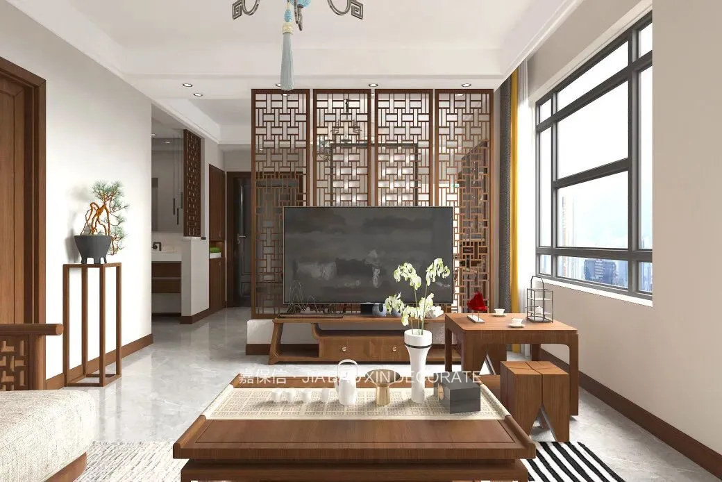 烟台嘉保信装饰打造石药健康城117㎡新中式风格装修效果图