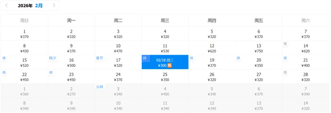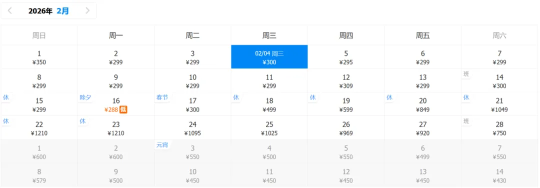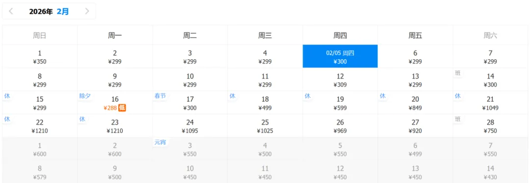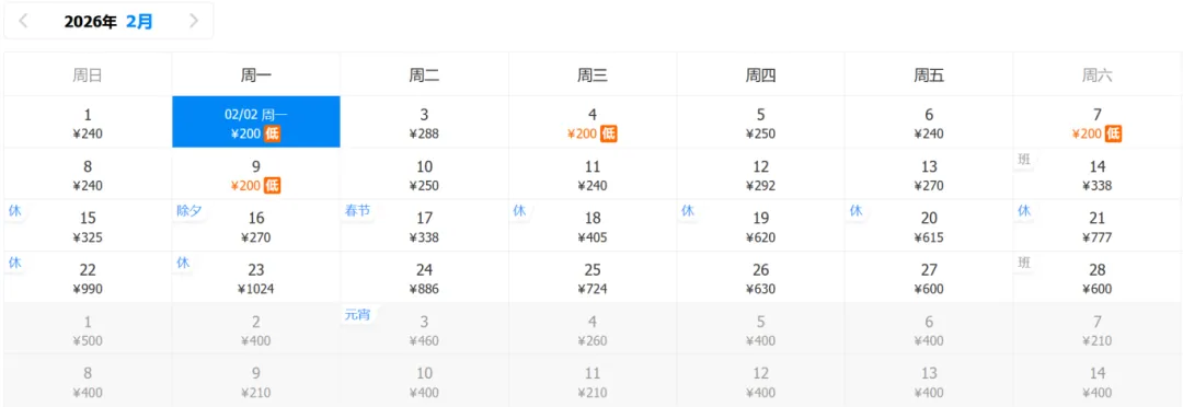2月份的特价机票