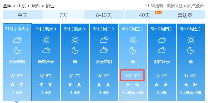 招远,未来几天最高气温12℃