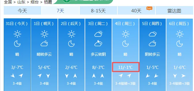 龙口,未来几天最高气温11℃