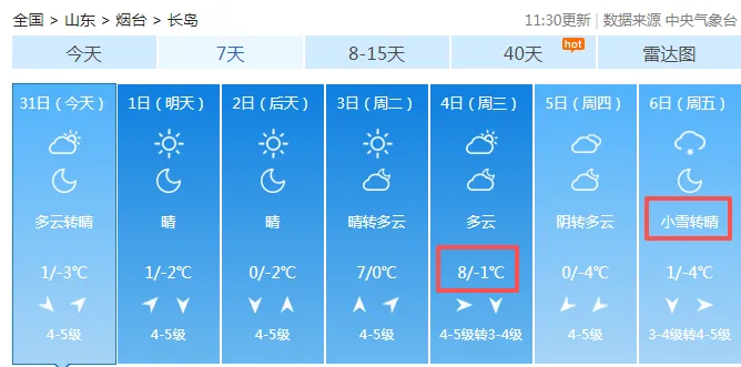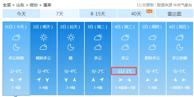 蓬莱,未来几天最高气温11℃