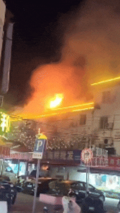另有一段视频显示,疑似在餐厅建筑物的2楼阳台、顶楼处均有明火燃烧。