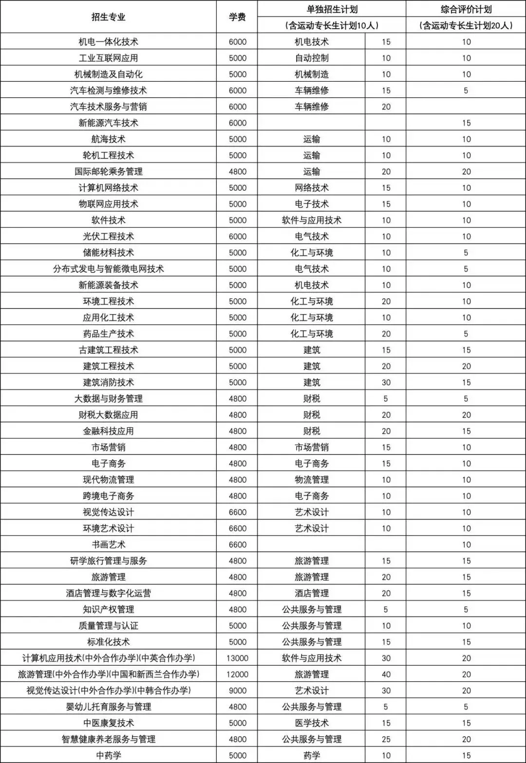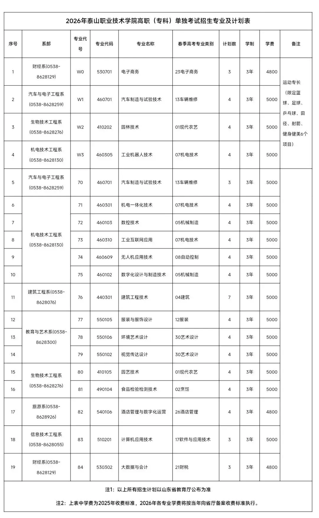 2026年潍坊工程、山东理工、烟台职业、泰山职业单招综评招生计划
