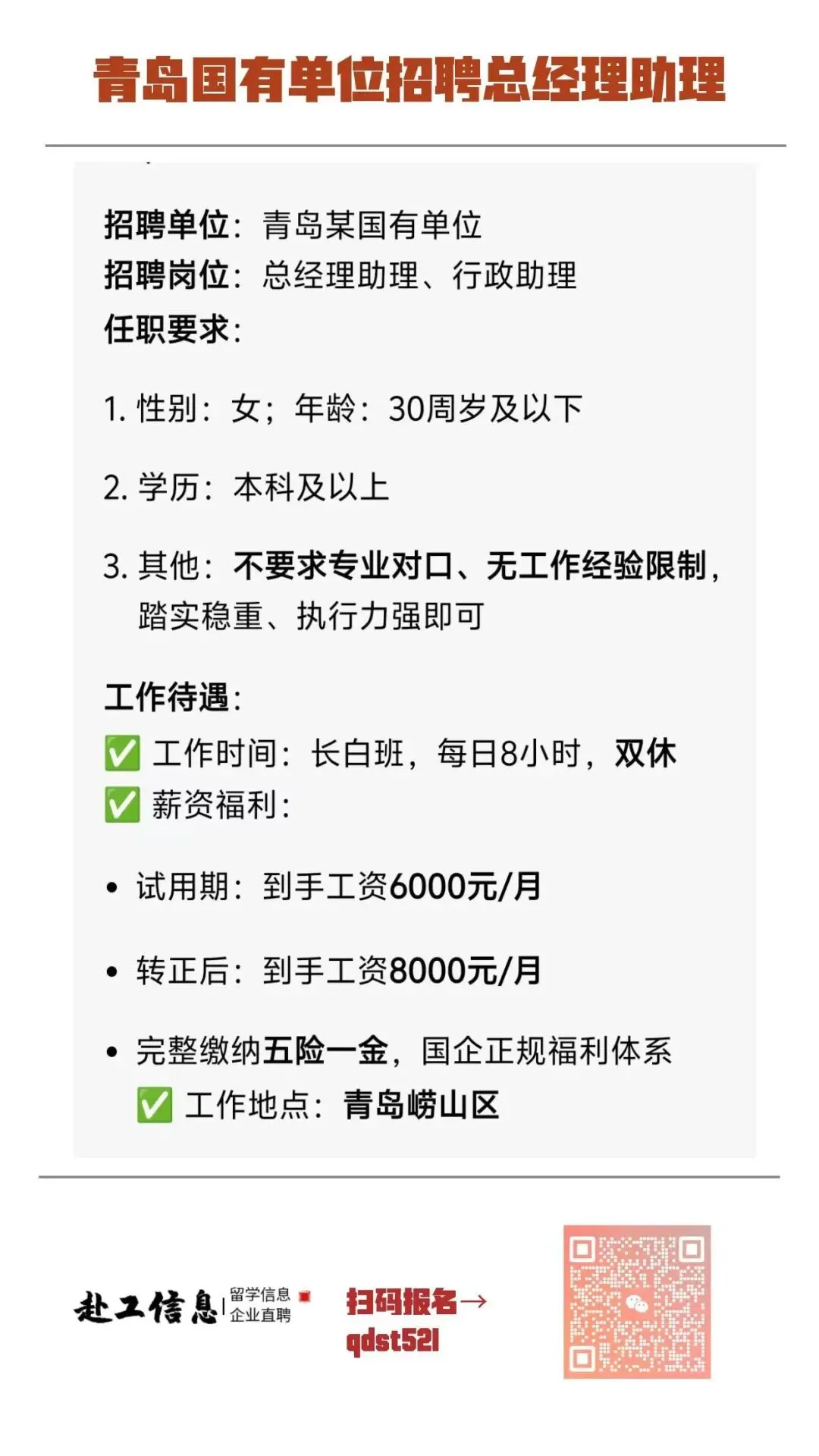 >青岛国有单位招聘总经理助理
