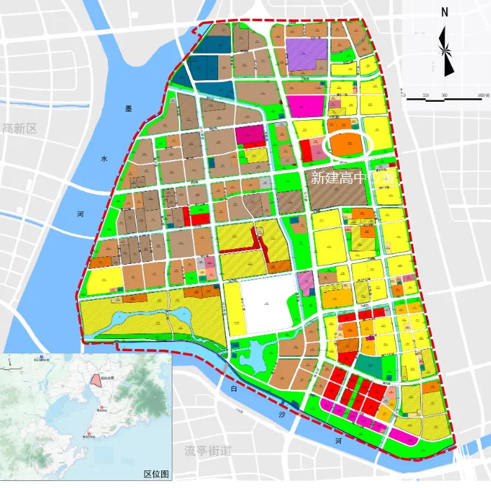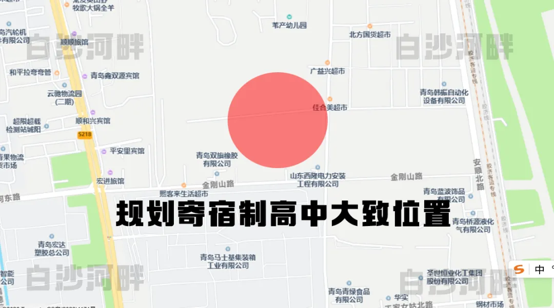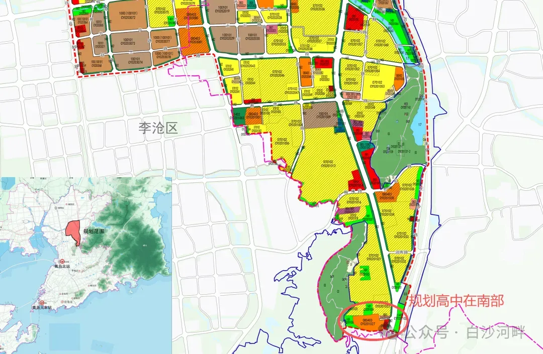 白沙河北片区规划新建寄宿制高中与城阳二中区位图