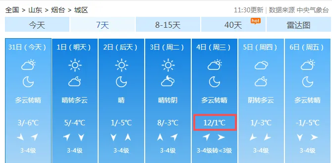 烟台市气象台发布