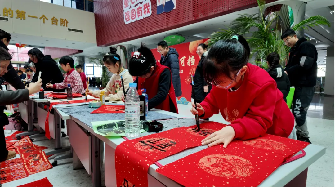 为丰富市民文化生活,传承中华优秀传统文化,传递新春祝福,美术活动部于1月31日在二楼大厅举办了“骐骥驰骋 势不可挡”烟台市区少年儿童送春联、迎新春活动。本次活动由来自市青少年宫书法专业的40余名学员组成,旨在增强少年儿童对传统节日的认同感、仪式感,营造喜庆祥和的节日氛围,提高学员书法审美,真正做到知行合一的教学理念,诠释书法与文化的完美结合。