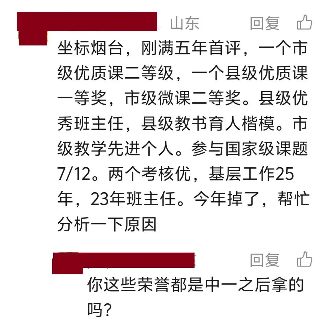 朋友里还有一个烟台的基层老师,中级满5年参评副高,手里有市级教学能手、市级课题主持人,还有几节市级优课,硬荣誉比这位老师还稍强一点,结果同样没通过!