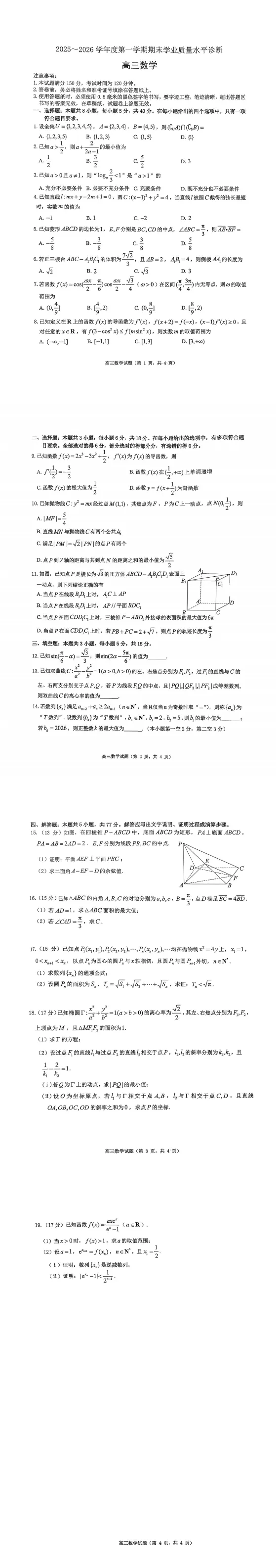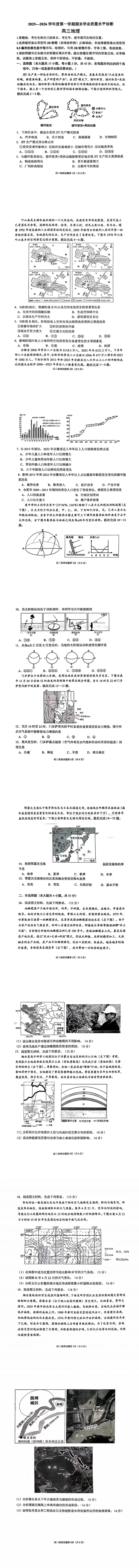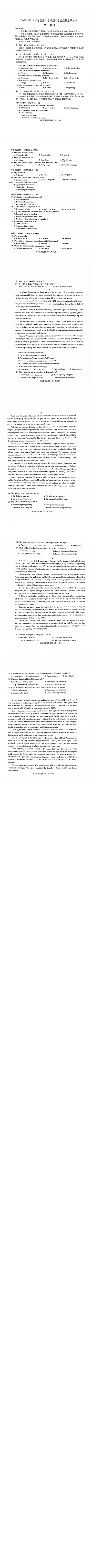 2025-2026滨州高三期末全科试题+答案