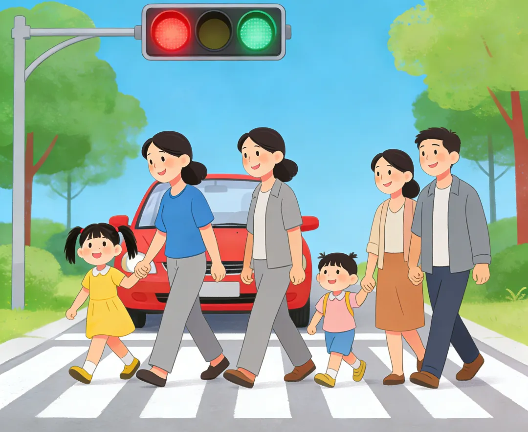 1.外出时,和孩子一起遵守交通规则、注意交通安全。