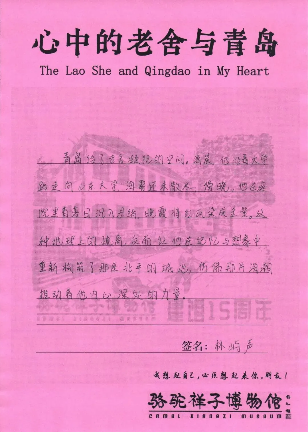 再次感谢各位朋友不吝笔墨,把一份独特的纪念永恒地留在骆驼祥子博物馆,让更多人见证文学的声音如何在一个个心灵中回响。正是您的参与,完成了骆驼祥子博物馆一次非常重要的布展——把它们展现和安放在人们的心里……