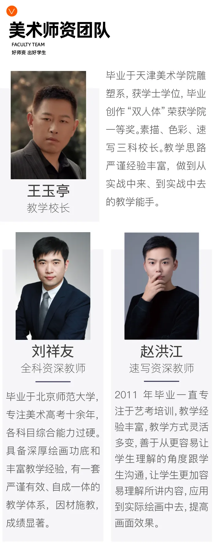 大隅艺术学校设多家分校区:青岛李沧集训总校、即墨分校、平度分校、济宁分校,日照分校。经过十多年的磨砺与沉淀之后,学校已成为师资力量雄厚、教学体系严谨的品牌明星学校。一流的教学实力、专业的教师团队、完善的教学体系、明确化的课程安排,让艺考学子在近些年取得无可匹敌的成绩。大隅艺术学校的教学团队由全国各大艺术高校专业的教师组成,拥有多位全国高考一线名师,并特聘央美、央音、山艺等多名教授任教学督导。先后为全国重点院校输送上万名优秀学生,是国内最具权威和影响力的知名艺术培训学校之一,在不断改革开拓创新进程中,为学生荣登各级艺术领域之端,做出扎实有效的贡献。