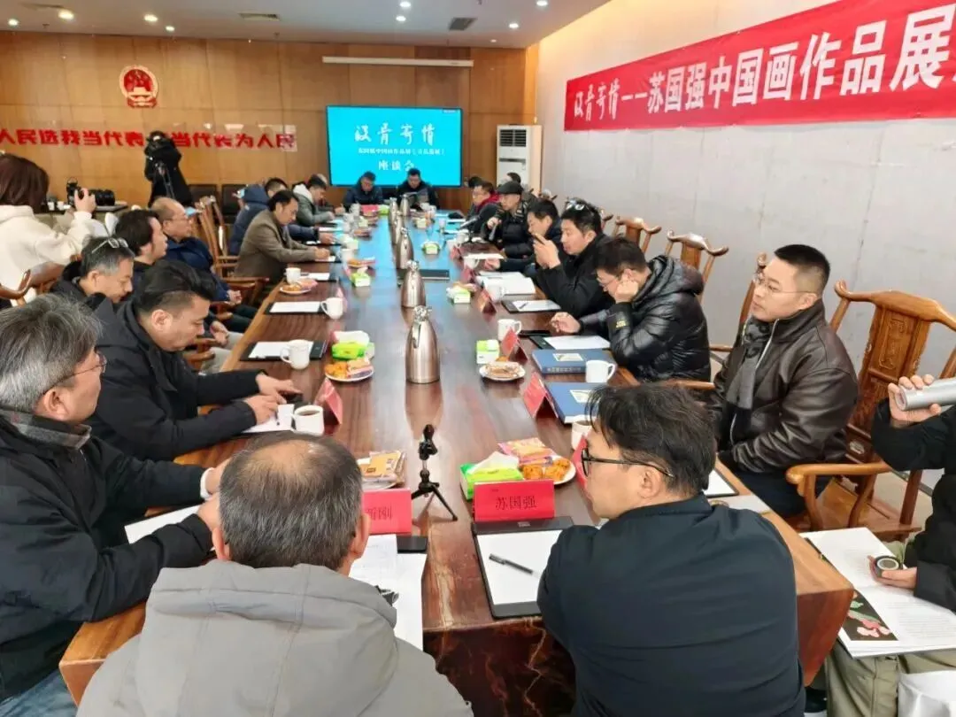 山东工艺美术学院院长董占军、青岛市文联党组书记徐树成、山东省美协驻会副主席李岩,青岛市文联副主席、青岛市美术家协会主席张凤塘,胶州市委常委、宣传部部长孙静,胶州市人大常委会副主任于福文、胶州市政协副主席贾全国、胶州市政协原副主席王天鸿,青岛大沽河省级生态旅游度假区党工委副书记、副主任李洋静,胶州市文联党组书记、主席宋祥文等领导,中国艺术研究院国画院副院长苏睿、中国国家画院研究员任军伟;来自山东大学、浙江财经大学、青岛农业大学、山东师范大学等高校的专家学者,企业界、艺术机构的嘉宾,艺术爱好者、市民朋友200余人参加了开幕式。开幕式由山东工艺美术学院造型艺术学院院长刘宁主持,山东师范大学研究中心副主任曹新刚主持座谈会。