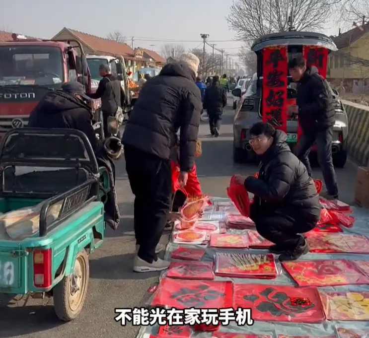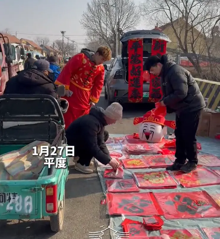 郑晨洋说,他们四处打听,最终开车到市里的批发市场,买来了各类春联。