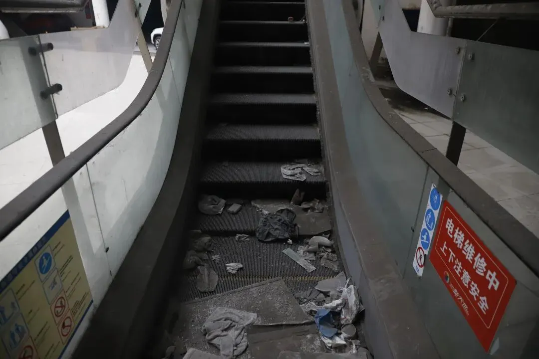 地下停车场多处渗水,地面湿滑;周边商品生意惨淡,多部电梯停运后成了垃圾堆。曾经被当地政府公示为重点项目的莱山区新天地都市广场,自落成开始便陷入了马拉松式的纠纷中。