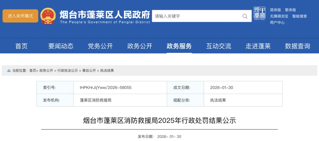 烟台市蓬莱区消防救援局发布