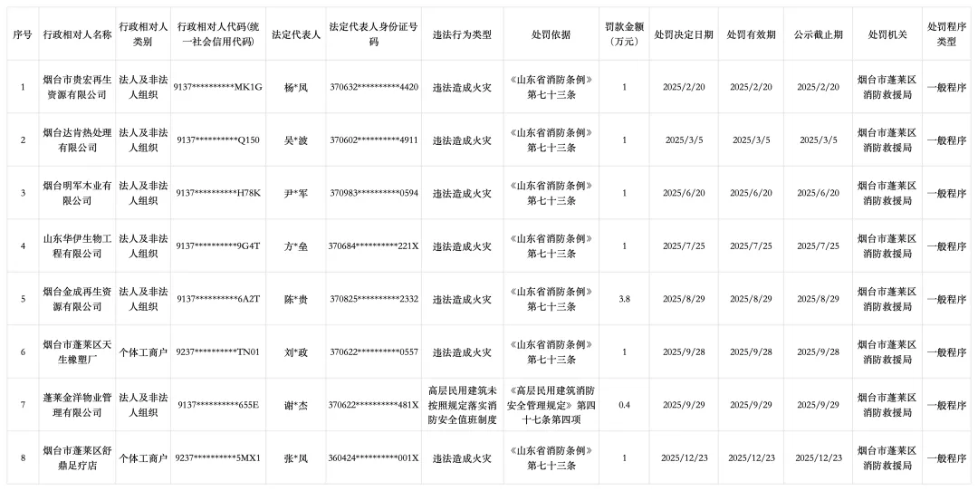 2025年行政处罚结果公示